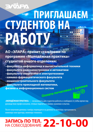 Факультет ИВТ ЧГУ им. И.Н. Ульянова » Новости » Приглашаем студентов на работу